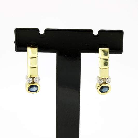 Hängende Ohrringe 585 Gold 14 Kt - 4 Brillanten & Saphir - Wert 680,-
