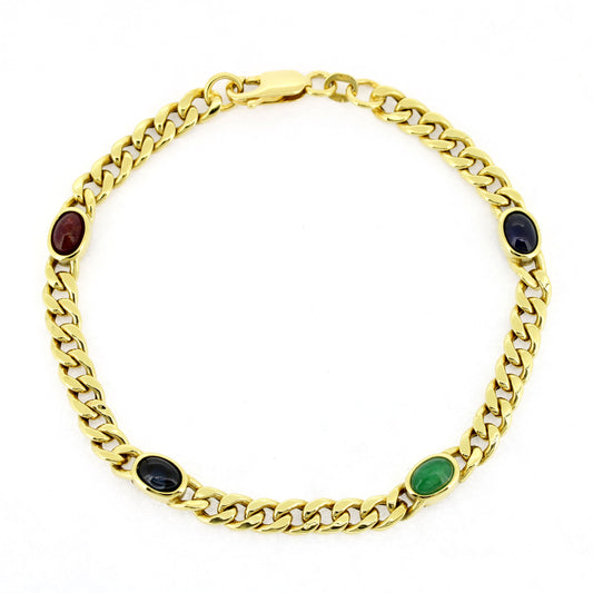 Panzer Armband 750 Gold 18 Kt - Saphir, Smaragd und Rubin - 42 cm - Wert 2120,-