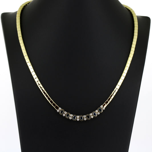 Saphir Collier 585 Gold 14 Kt Gold - mit Brillanten - Wert 5500,-