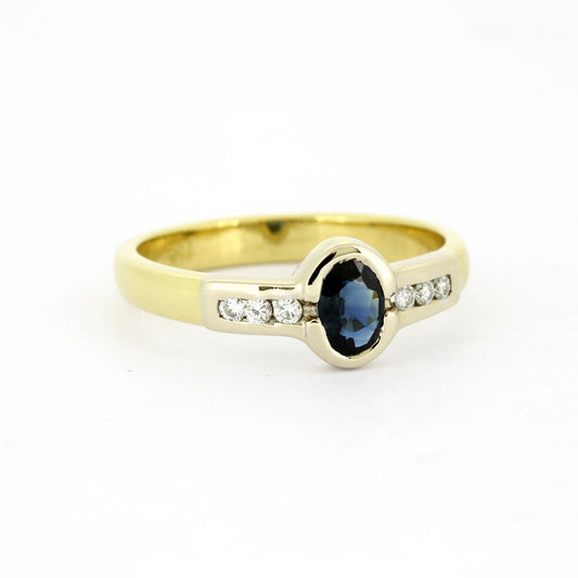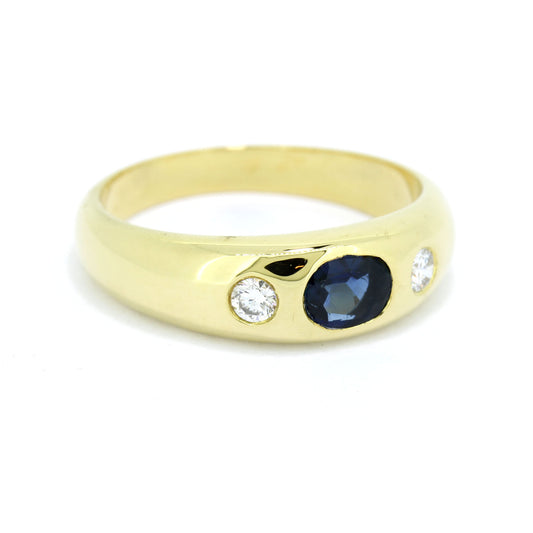 Saphir Band Ring 750 Gold 18 Kt Gelbgold - Diamant 0,12 ct H - SI - Wert 1040,-