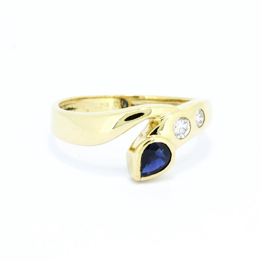Saphir Ring 750 Gold 18 Kt Gelbgold Brillanten 0,09 ct VS-SI Wert 470,-