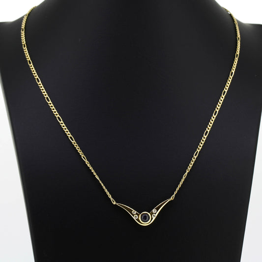 Saphir Cabochon Collier Kette 585 Gold 14 Kt Gelbgold - Diamanten - Wert 590,-