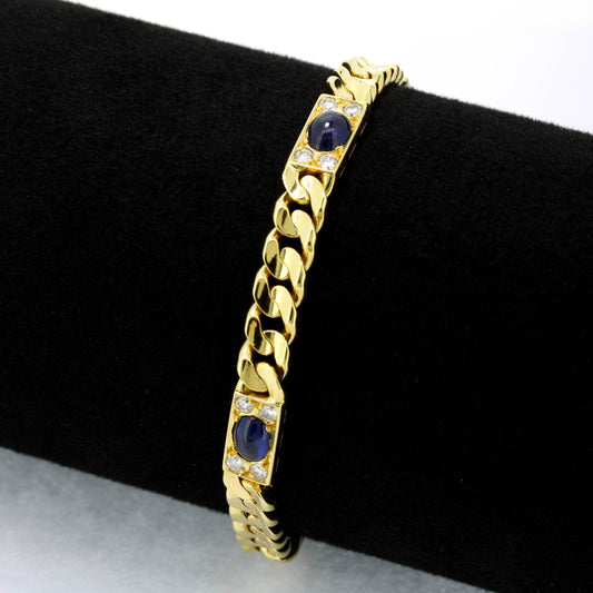 Saphir Cabochon Armband 750 Gold 18 Kt Gelbgold - Brillanten - Wert 3600,-