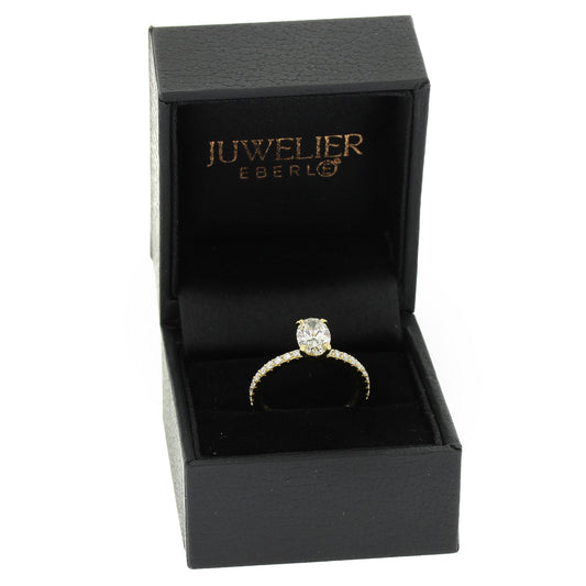 Solitär Verlobungsring 585 Gold 14 kt Gelbgold - IGI 1,01 ct oval Brillant VS2 - CVD Labor Diamant