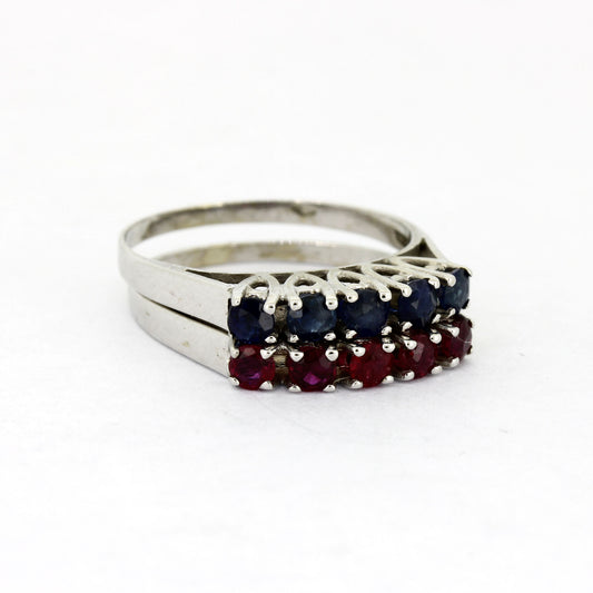 Zwei Ringe 585 Gold 14 kt Weißgold - Saphire & Rubine - Wert 540,-