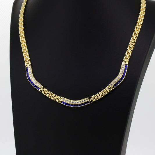 Collier 585 Gold 14 kt Saphir Brillanten 0,48 ct - 46 cm lang - Wert 3600,-
