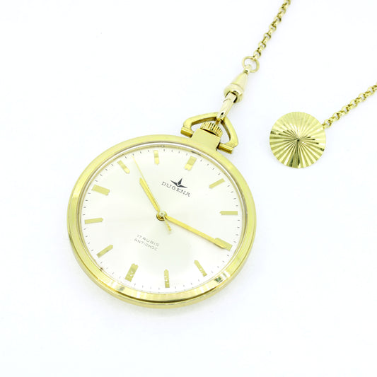 Dugena Taschenuhr vergoldet - Taschenuhrkette 333 Gold 8 Kt Handaufzug 42 cm
