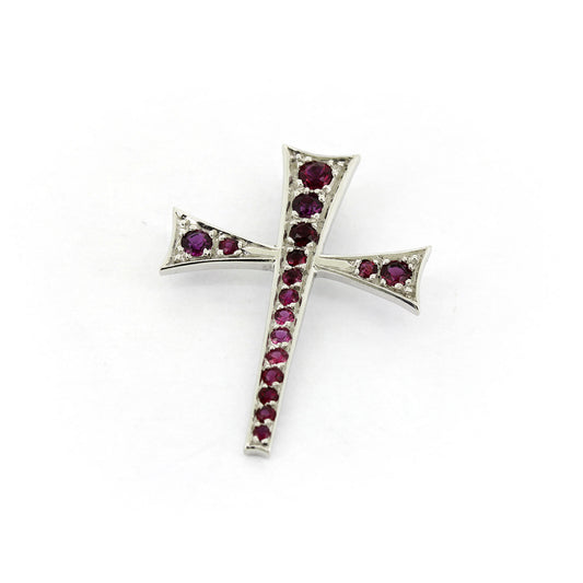 Kreuz Anhänger 585 Gold 14 kt Weißgold - Rubine