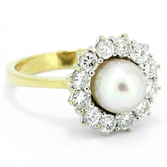 Süßwasserperlen Ring 750 Gold 18 Kt Gelbgold Weißgold - Brillanten - Wert 2800,-