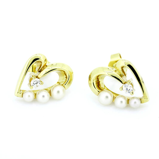 Herzform Ohrringe 585 Gold 14 Kt Gelbgold - Perlen und Zirkonia - Wert 580,-