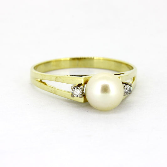 Ring 585 Gold 14 kt Gelbgold - Perle & Diamanten - Wert 600,-