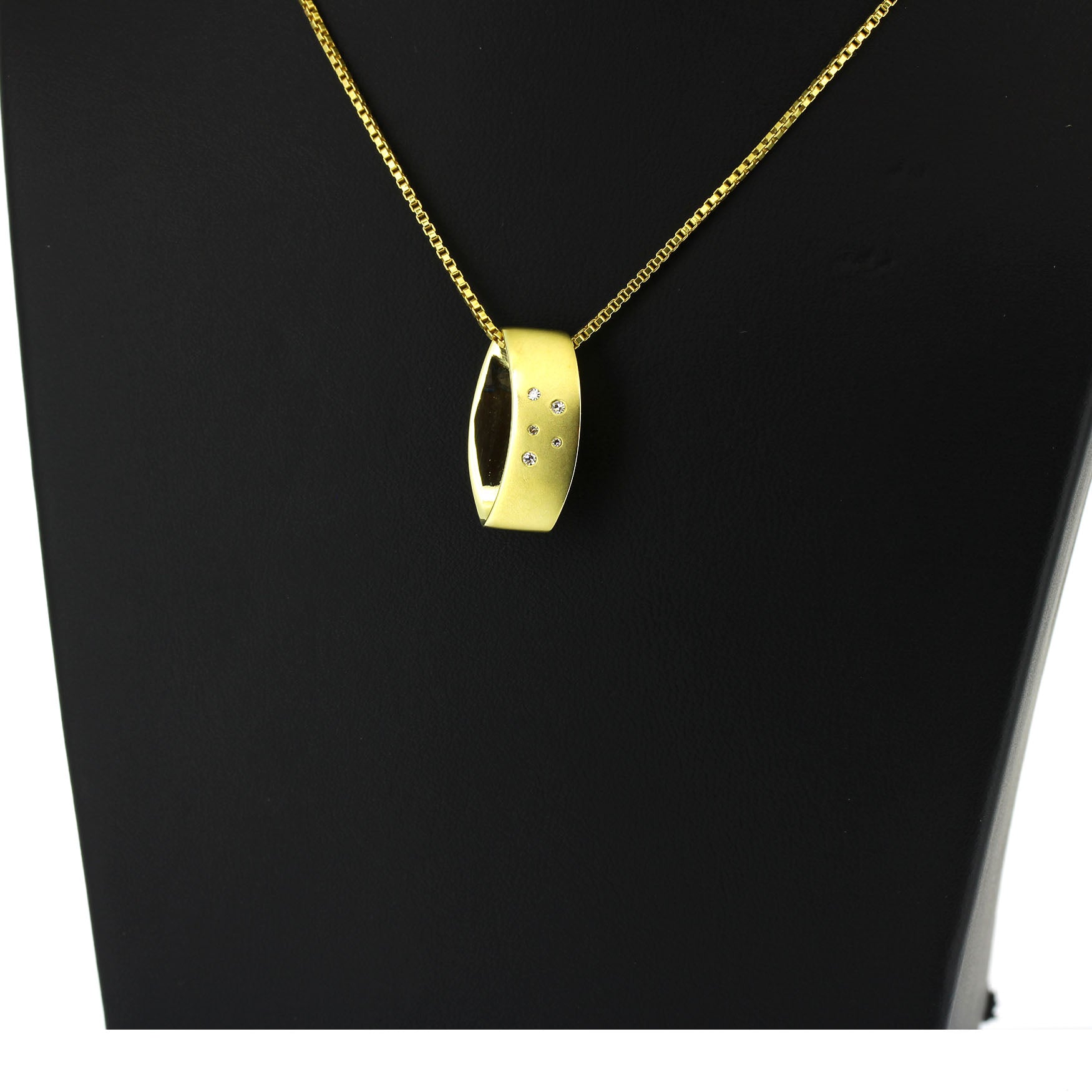 Dieser elegante Anhänger aus 585er Gelbgold (gestempelt und geprüft) ist mit funkelnden Diamanten besetzt und besticht durch sein edles, zeitloses Design.