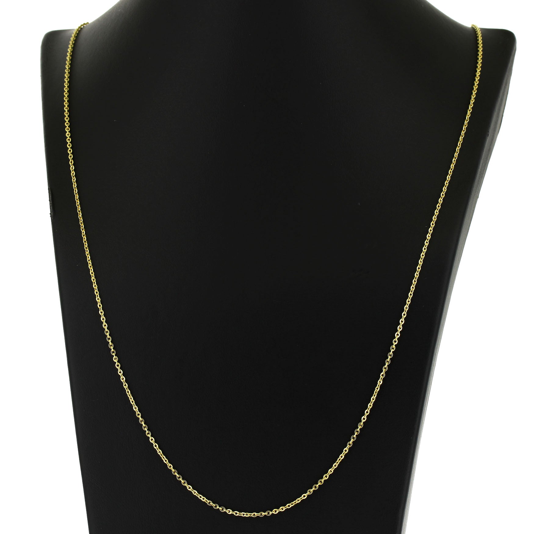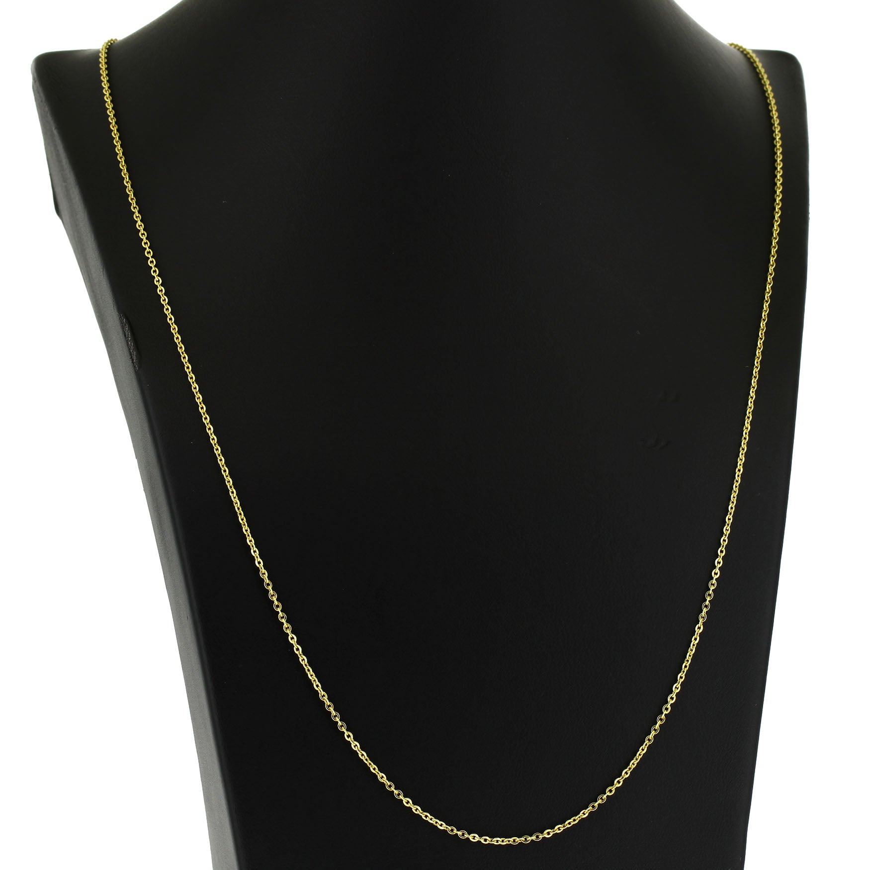 Feine Kette aus 585er Gelbgold (gestempelt und geprüft) mit einem Gesamtgewicht von ca. 4,76 g. Die Kette misst ca. 74 cm in der Länge und hat einen Durchmesser von ca. 1,5 mm.