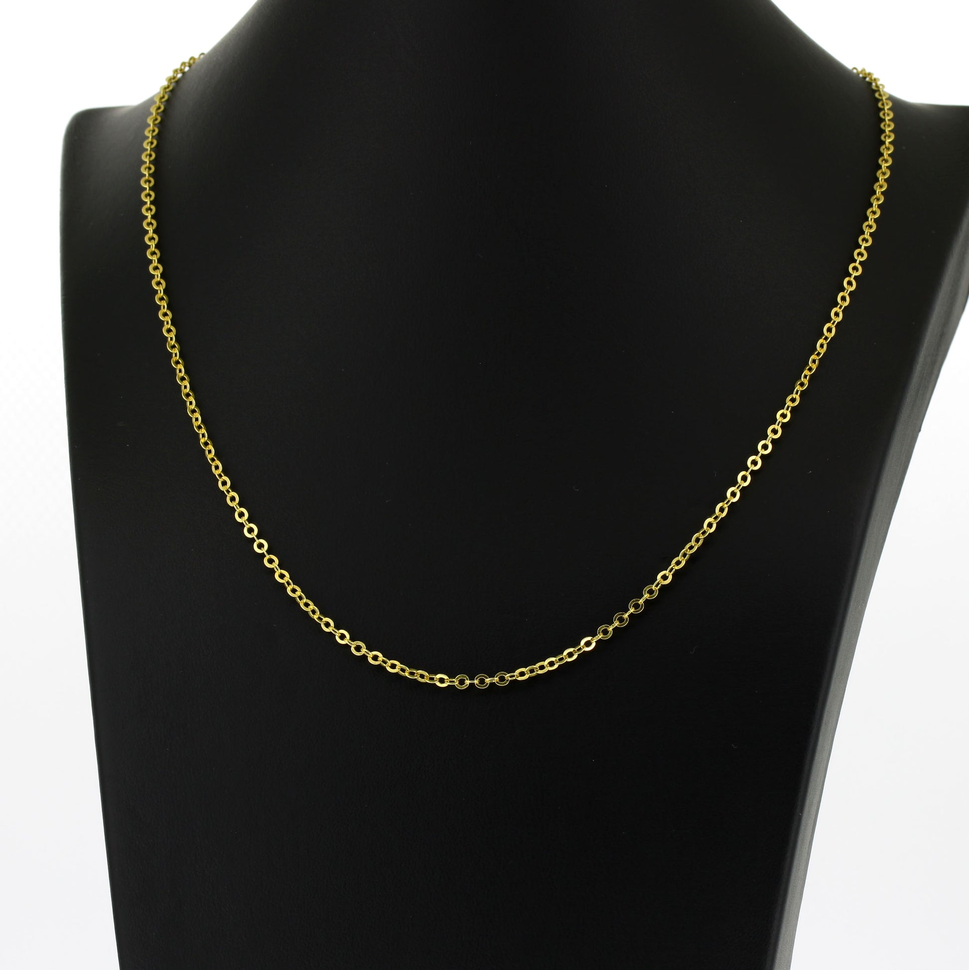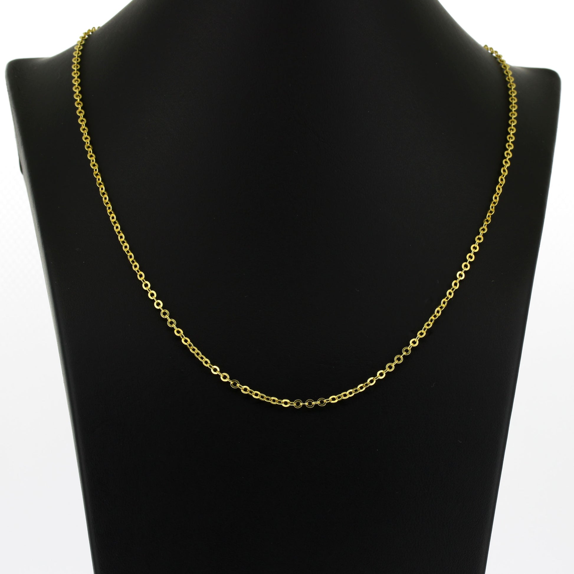 Feine Kette aus 750 Gelbgold, gestempelt und geprüft, mit einem Gesamtgewicht von ca. 4,5 g. Die Kette misst ca. 46 cm in der Länge, ca. 2,3 mm in der Breite und ca. 0,8 mm in der Stärke. Dieses Schmuckstück wurde mit großer Sorgfalt von einem erfahrenen Goldschmied aufgearbeitet und befindet sich in einem sehr guten Zustand.