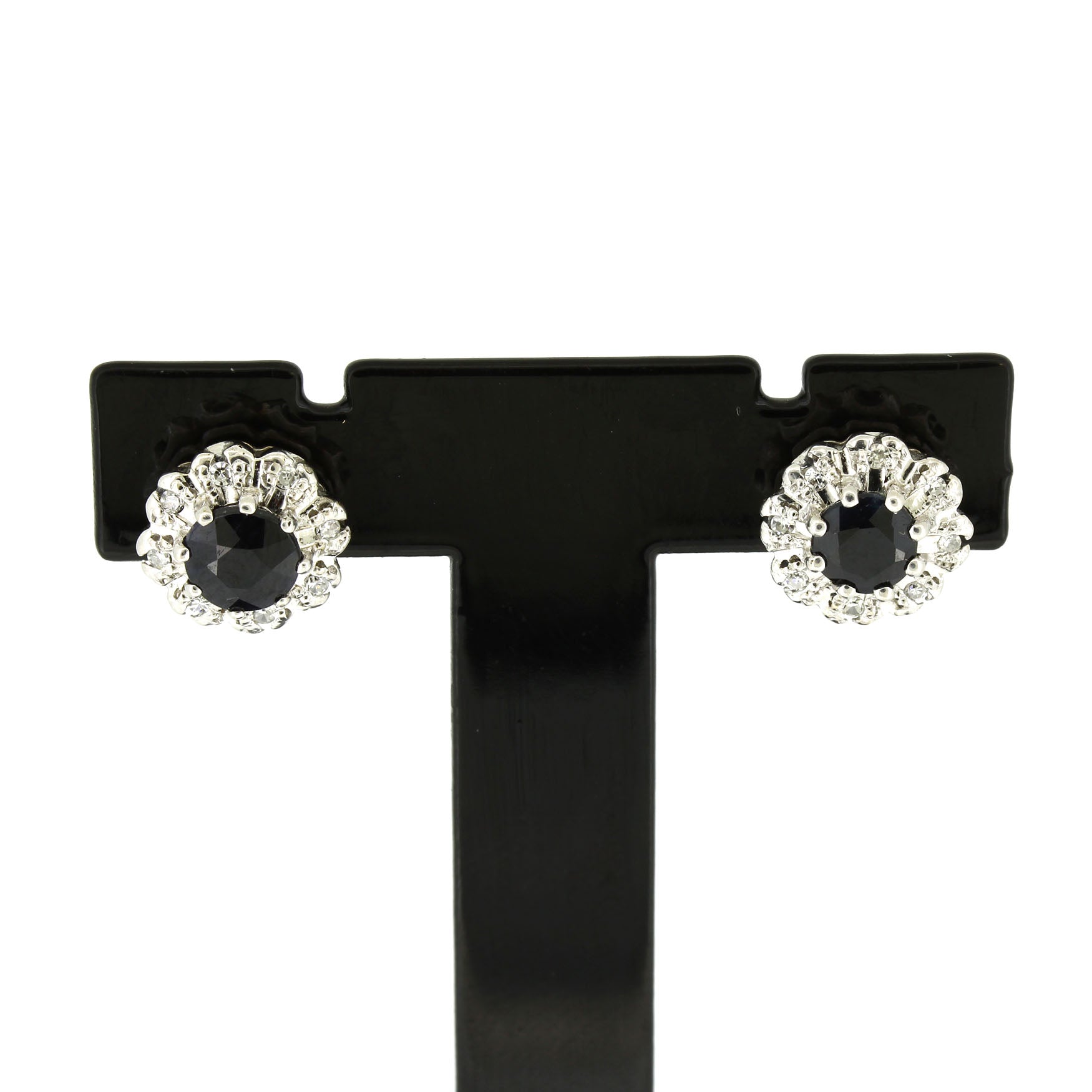 Diese edlen Ohrringe aus 585er Weißgold (gestempelt und geprüft) sind mit einem feinen Saphir sowie funkelnden Diamanten besetzt und bestechen durch ihre elegante Ausstrahlung. Sie haben einen Durchmesser von ca. 9,2 mm, eine Stärke von ca. 5,1 mm und ein Gesamtgewicht von ca. 2,50 g.