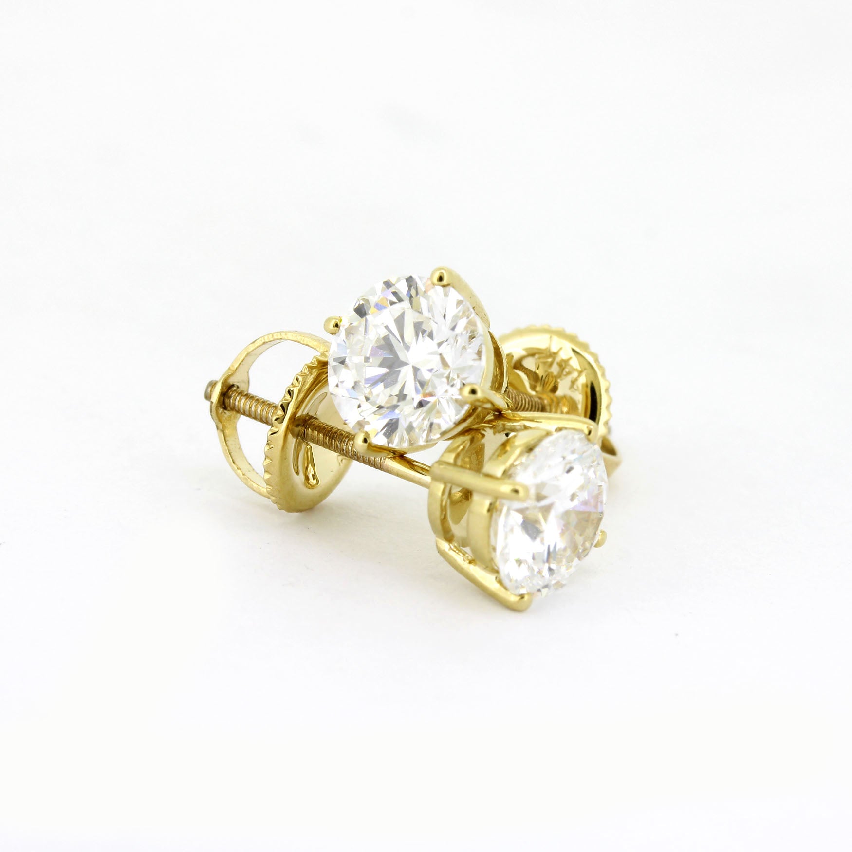 Edle Brillantohrringe aus 585er Gelbgold (gestempelt und geprüft) mit zwei CVD-Diamanten (laborgezüchtet) von jeweils ca. 0,75 ct in der hochwertigen Qualität E/VS2.