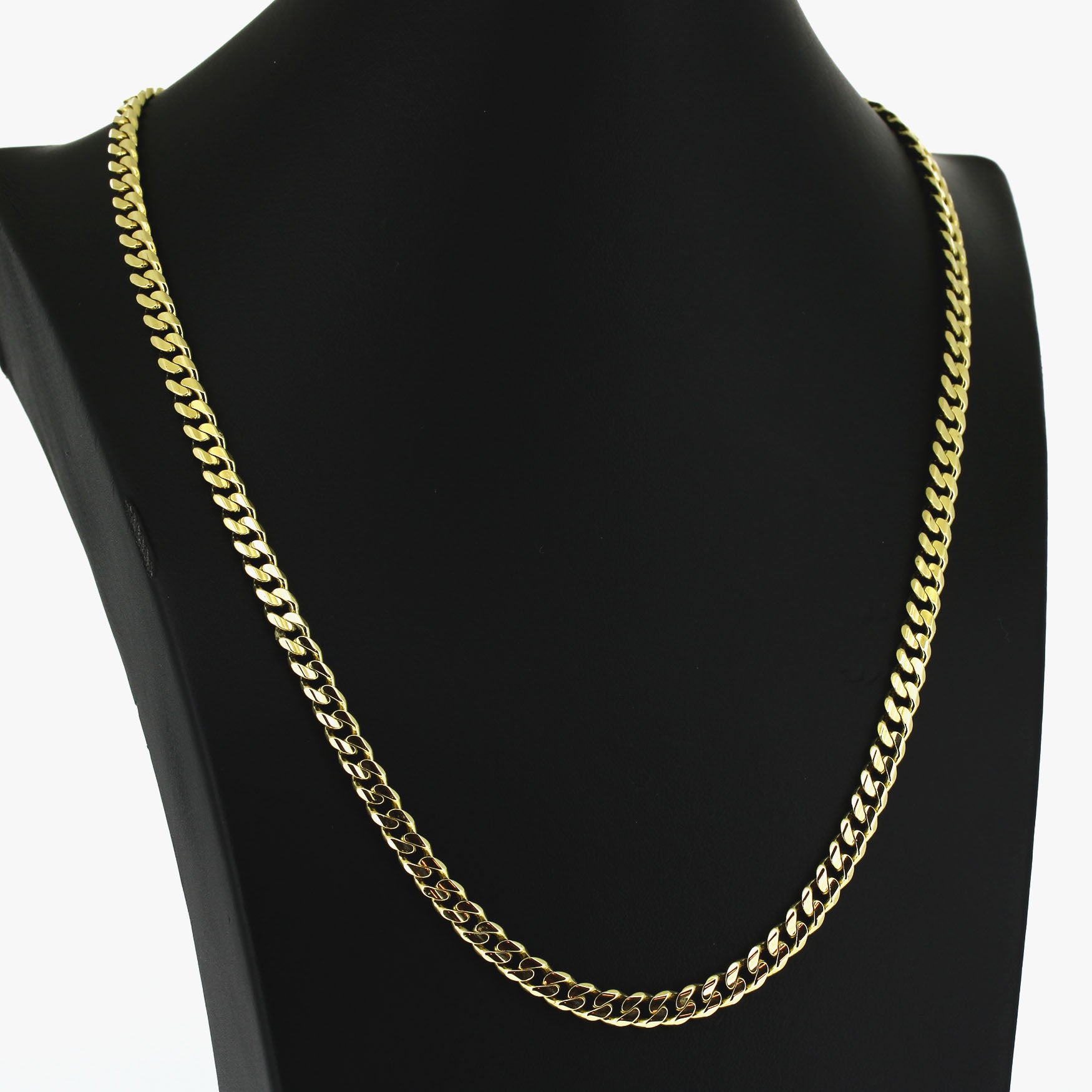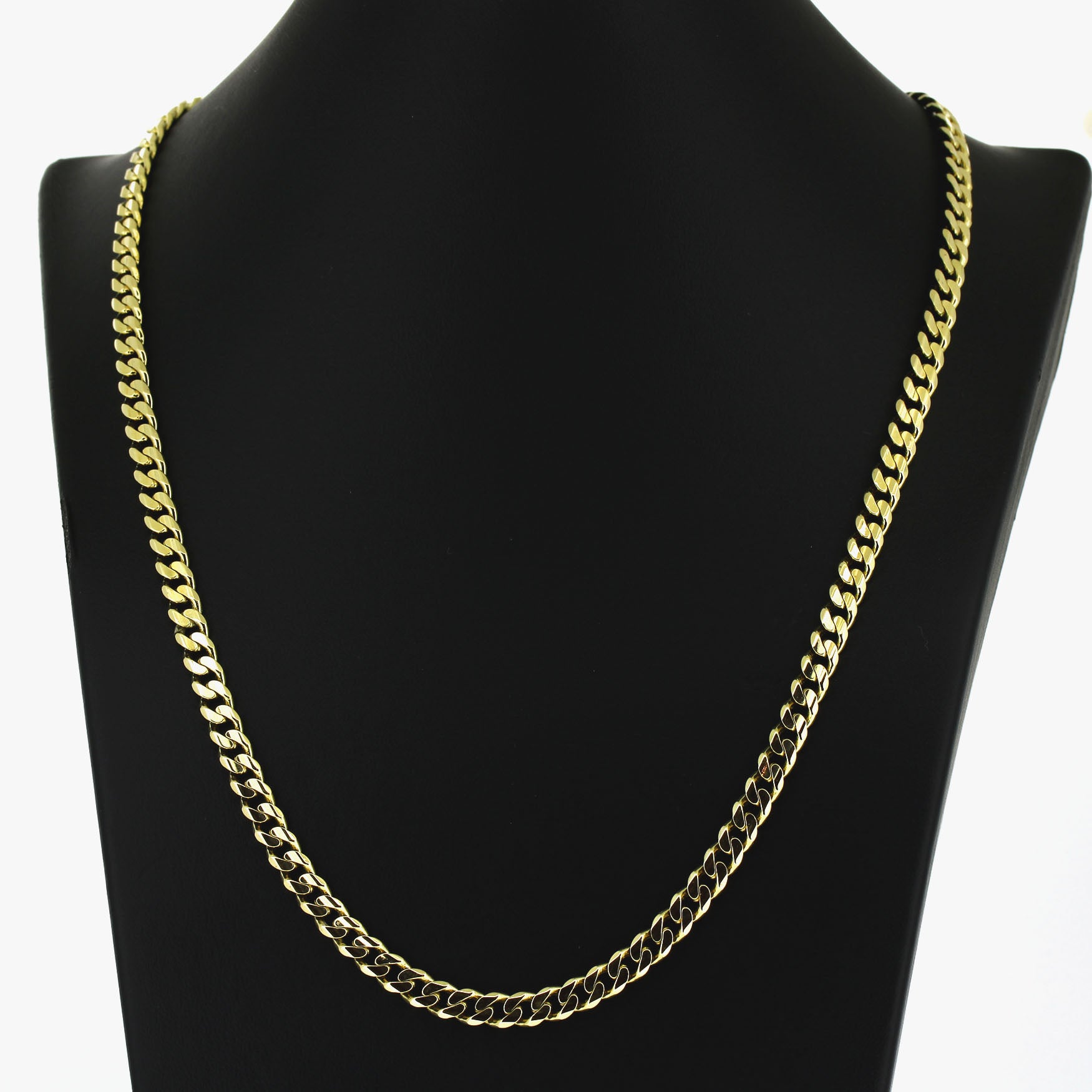 Massive Kette aus 585er Gelbgold (gestempelt und geprüft) mit einem Gesamtgewicht von ca. 33,16 g. Die Kette misst ca. 51 cm in der Länge, hat eine Breite von ca. 5,2 mm und eine Stärke von ca. 2 mm.