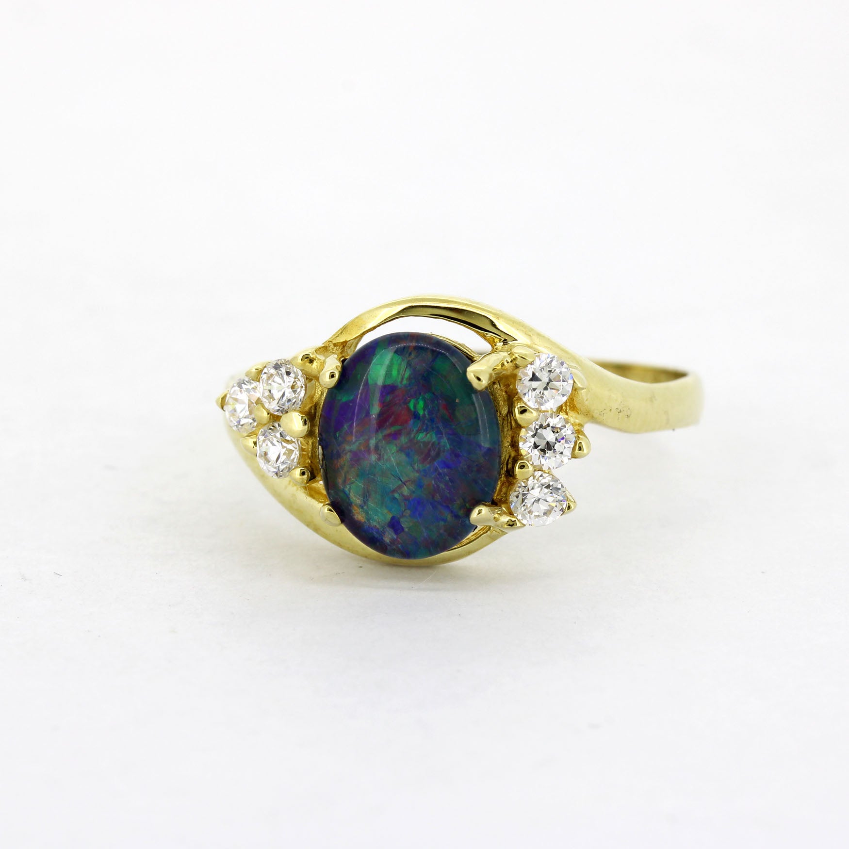 Ring 333 Gelbgold mit Opal-Triplette & Zirkonia - Wert 350,-