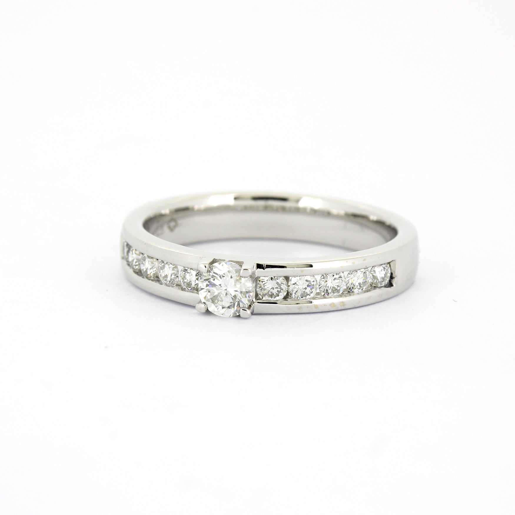 Dieser hochwertige Ring aus 585er Weißgold (gestempelt und geprüft) ist mit Diamanten von insgesamt 0,80 ct (W/SI) besetzt und überzeugt durch elegantes Design und strahlende Brillanz.