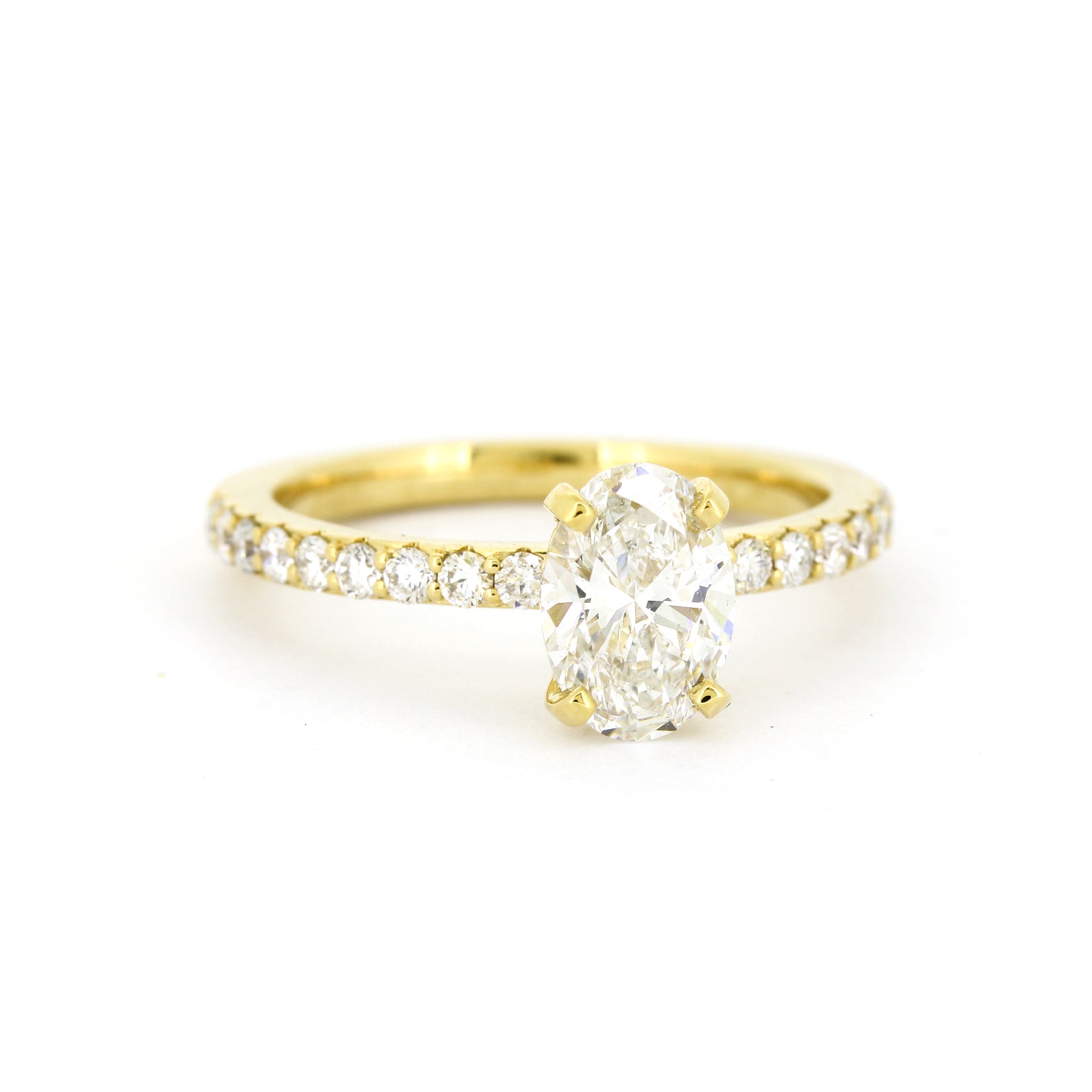 Solitär Verlobungsring 585 Gold 14 kt Gelbgold - IGI 1,01 ct oval Brillant VS2 - CVD Labor Diamant