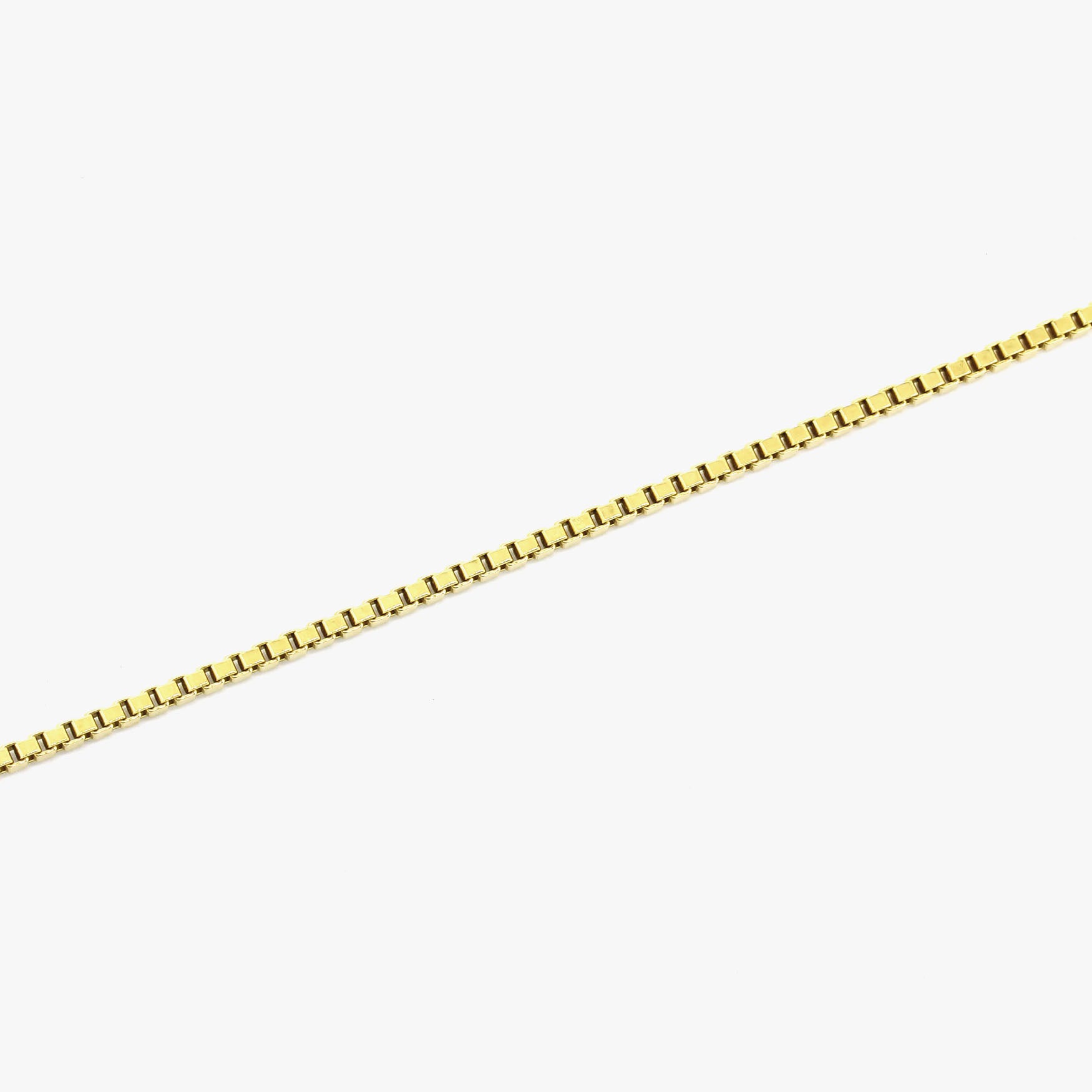 Kette aus 585er Gelbgold (gestempelt und geprüft) mit einem Gesamtgewicht von ca. 7,49 g. Die Kette misst ca. 50 cm in der Länge und hat eine Breite von ca. 1,4 mm sowie eine Stärke von ca. 1,4 mm.